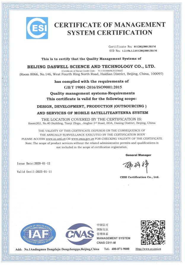 管理体系认证证书
